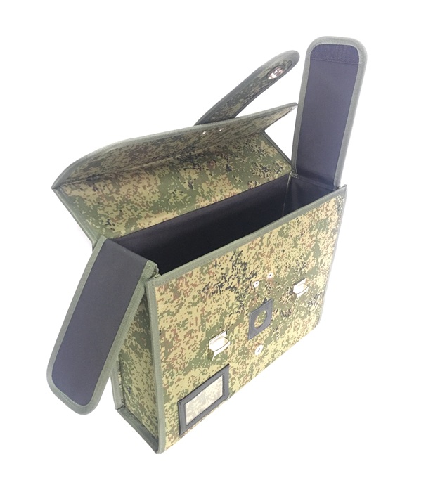 Спецпортфель каркасный для документов предназначены для хранения и транспортировки документов с ограниченным доступом. Изготовлен из прочной ткани Оксфорд 600Д. Закрывается на два замка. Комплектуется ручкой которая прошита и усилена стропой, а также есть место под опечатку. Внутри спецпортфеля - одно отделение закрывающееся на дополнительный клапан. Центральный узкий клапан с магнитным замком закрывает место под опечатку.
