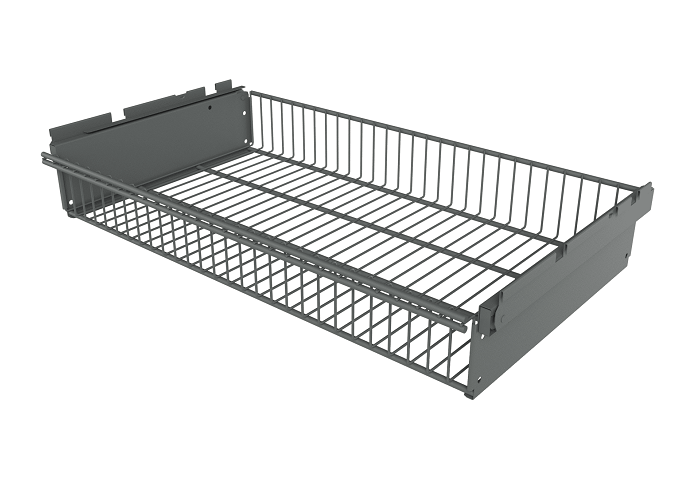 Корзина выдвижная Титан GS предназначена для установки на гардеробную систему. Изготовлена из проволоки, такой же как и сетчатые полки Титан GS. Учитывая крупноячеистую структуру, выдвижные корзины являются отличным вариантом для хранения одежды, поскольку обеспечивается отличная вентиляция вещей. Корзина выдерживает до 35 кг при ее равномерном распределении. Устанавливается на кронштейны полок Титан GS 335 (в комплект не входят). Покрытие: порошково-полимерное, гипааллергенное и устойчивое к механическому воздействию. Цвет: серебристый