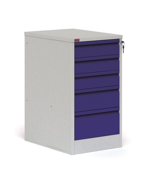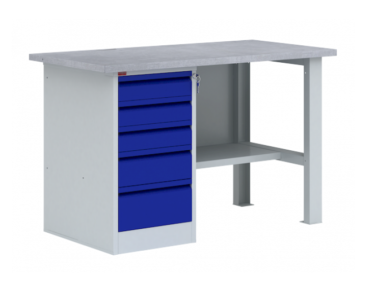 Металлические слесарный верстак ВП-3/1,2 представляет собой рабочий стол для ручной обработки металлических, деревянных изделий, а также предметов, выполненных из других материалов. Металлический верстак используется в мастерских, гаражах, автосервисах и в других рабочих зонах. Он являются основой, как небольшого промышленного производства, так и крупного предприятия. Допустимая равномерно распределенная нагрузка на верстак - 1000 кг, на полку верстачную - 40 кг, на выдвижной ящик - 30 кг. В комплект верстака ВП-3/1,2 входит: столешница СТ-1,2 из МДФ, покрытая оцинкованным листовым металлом, стенка задняя металлическая, металлическая верстачная опора, тумба Т-2 с пятью выдвижными ящиками. Тумба закрывается центральным ключевым замком. Тумбу можно установить как с левой, так и правой стороны верстака. Дополнительно на верстак можно установить перфорированный экран соответствующего размера, аксессуары на экран. Цвет: верстак - серый Ral 7035, дверь тумбы - синий Ral 5002